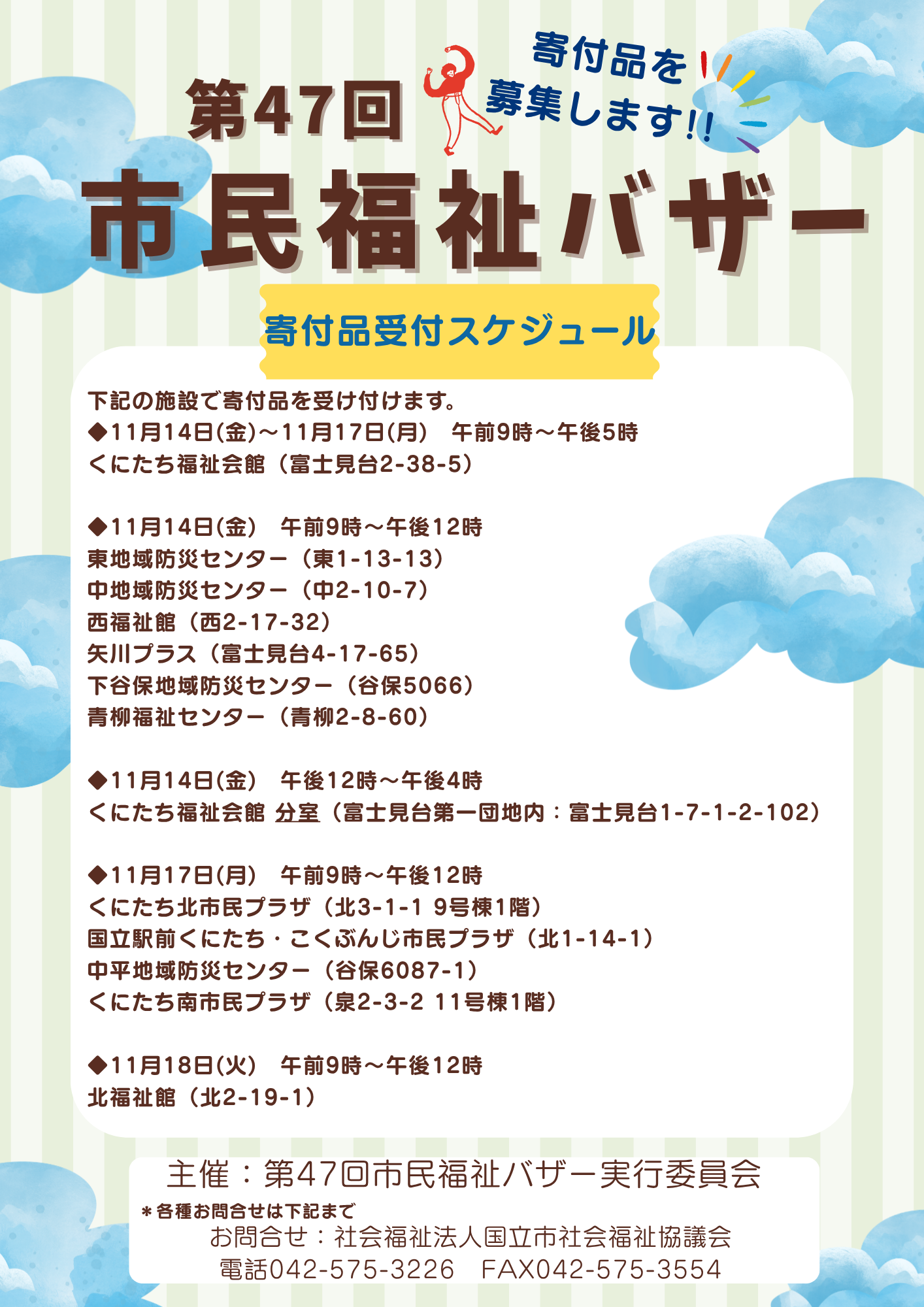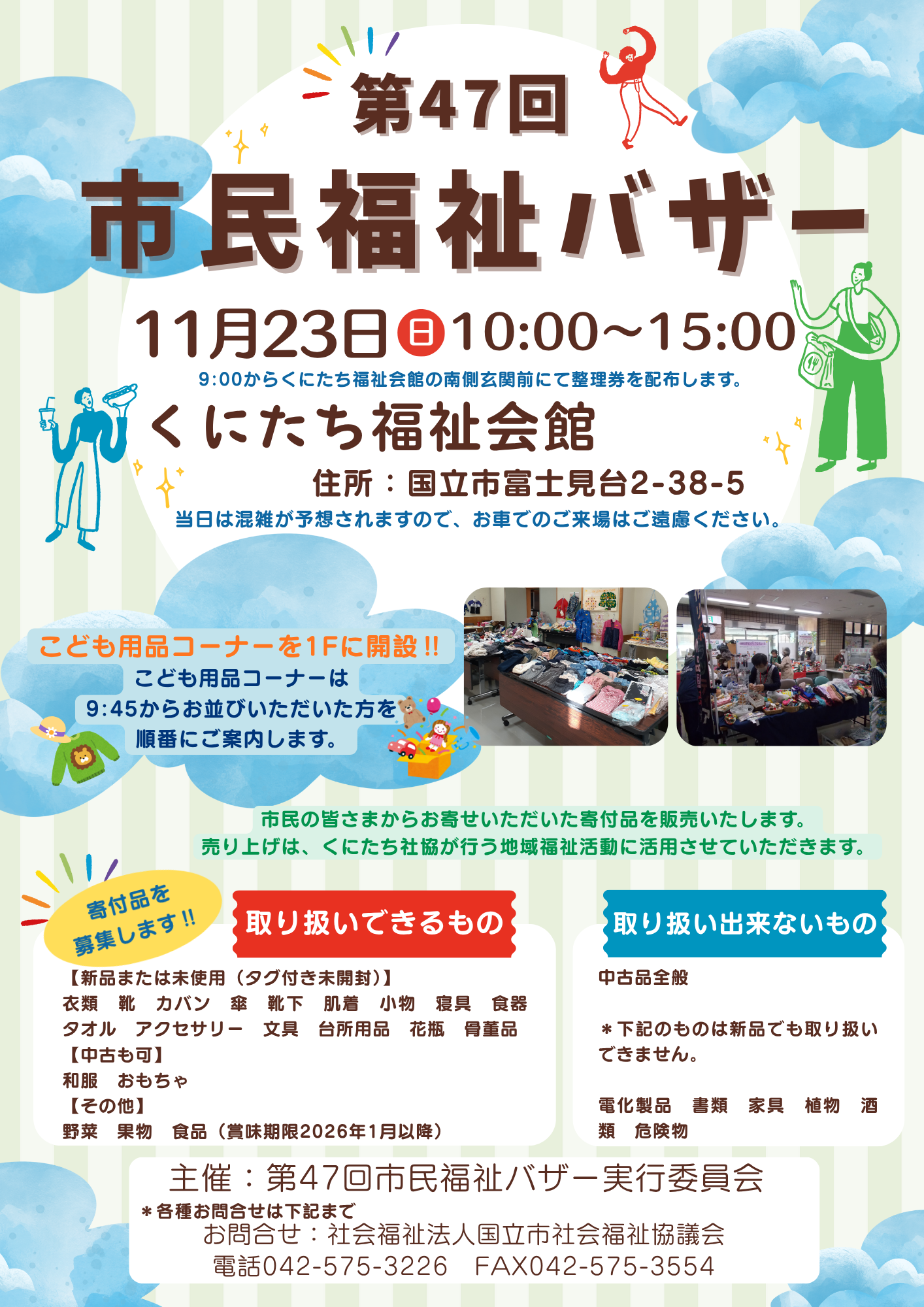 売り上げは、国立市社会福祉協議会が行う地域福祉活動に活用させていただきます。