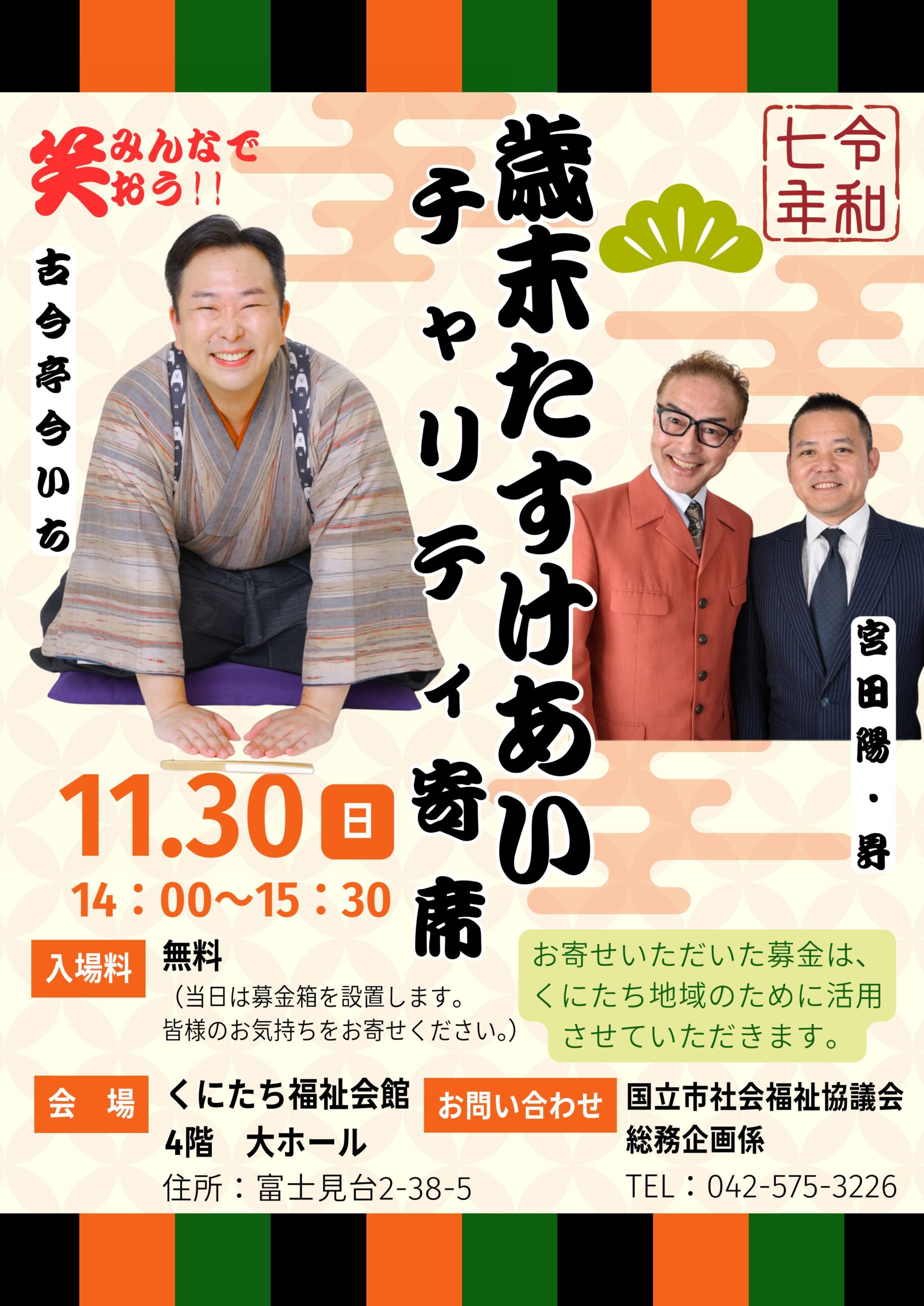 歳末たすけあい運動(※)の一環として笑顔あふれるチャリティ寄席を開催いたします。