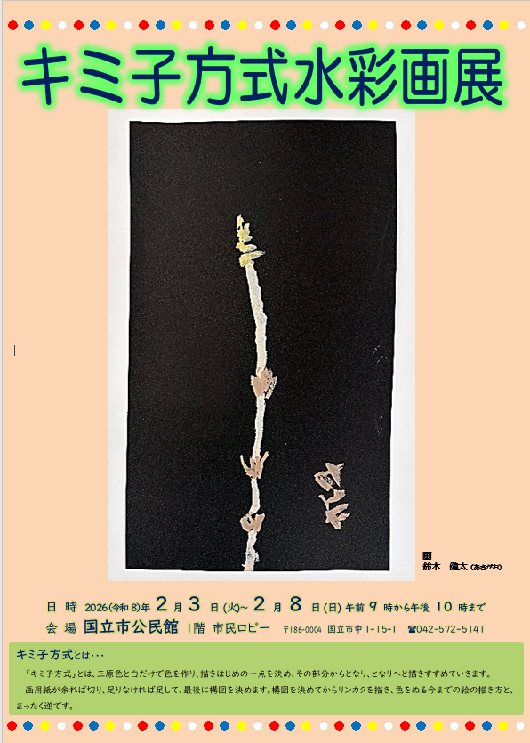 国立市障害者センター「あさがお」、国立市公民館「シルバー学習室」「絵筆の会」の共催となります。